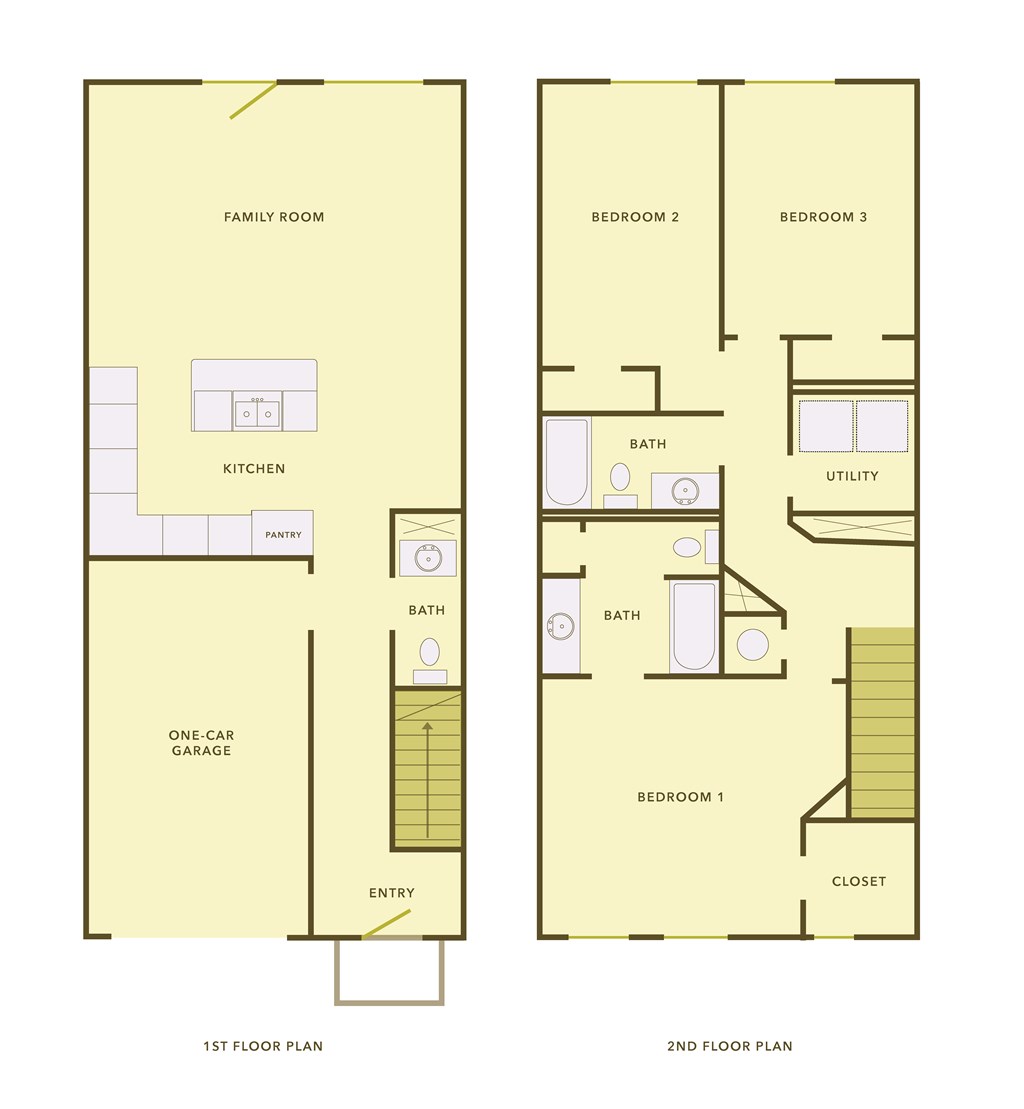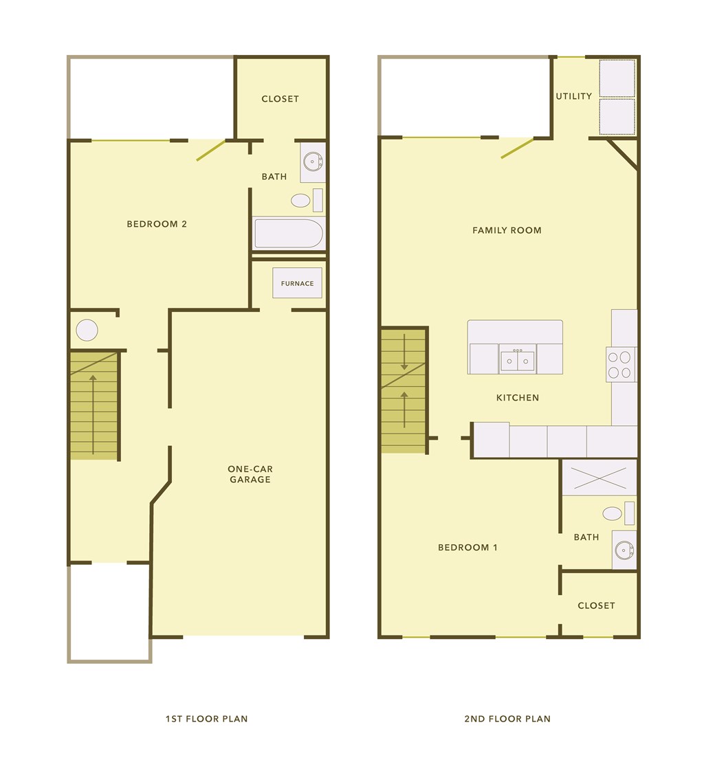 Two Bedrooms, Two Baths, One Car Garage, 1,173 sq. ft., $500 Deposit